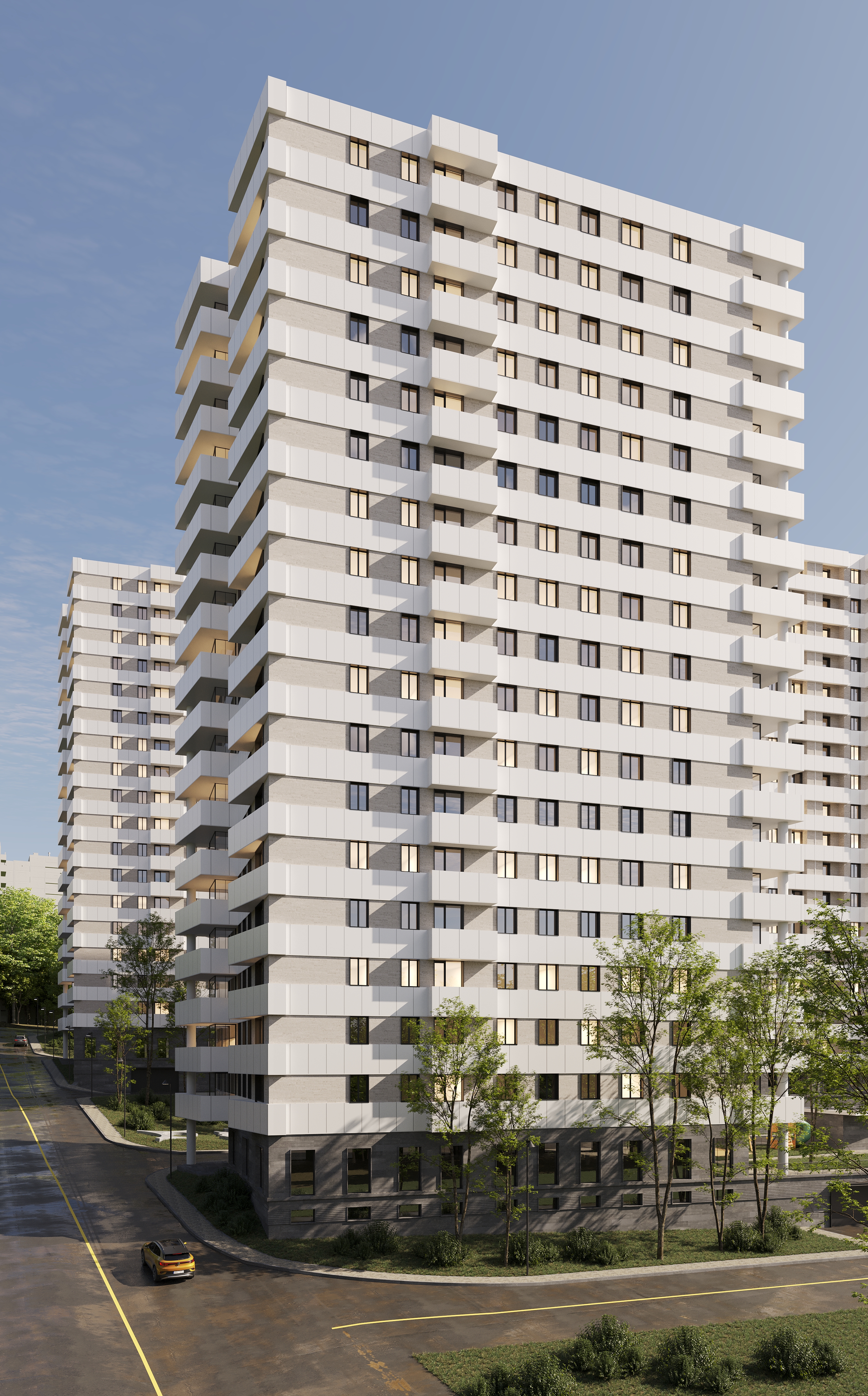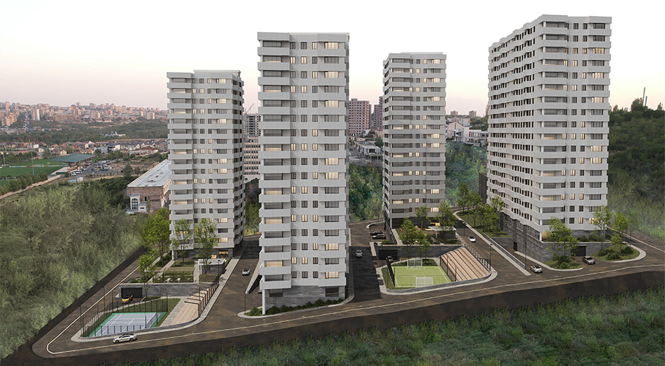 Բաղկացած է 18-հարկանի 4 բազմաբնակարան շենքերից, որոնք ունեն նաև ստորգետնյա երկհարկանի ավտոկայանատեղիներ:
